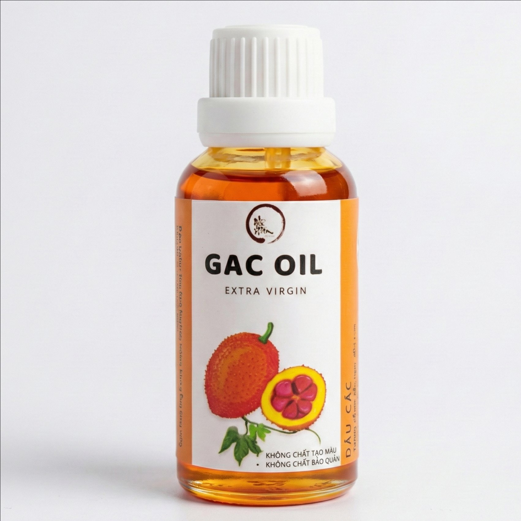 Dầu Gấc nhà làm với các thành phần tự nhiên từ nền của dầu olive và Gấc nguyên chất. Gấc được mệnh danh là siêu trái cây từ thiên đường nhờ hàm lượng dinh dưỡng cực kỳ tốt như lycopene, betacarotene. Lượng Lycopene gấp 70 lần quả cà chua Lượng Vitamin A gấp 75 lần rau xanh Lượng Betacarotene (tiền chất khi vào cơ thể sẽ chuyển hóa thành vitamin A) gấp 10 lần so với carrot. Với hàm lượng dưỡng chất cao và đặc biệt những chất siêu chống oxy hóa như betacarotene và lycopene cao nhất trong các loại thực vật thì Dầu Gấc là loại dầu dưỡng chống lão hóa da tốt nhất và hiệu quả nhất.