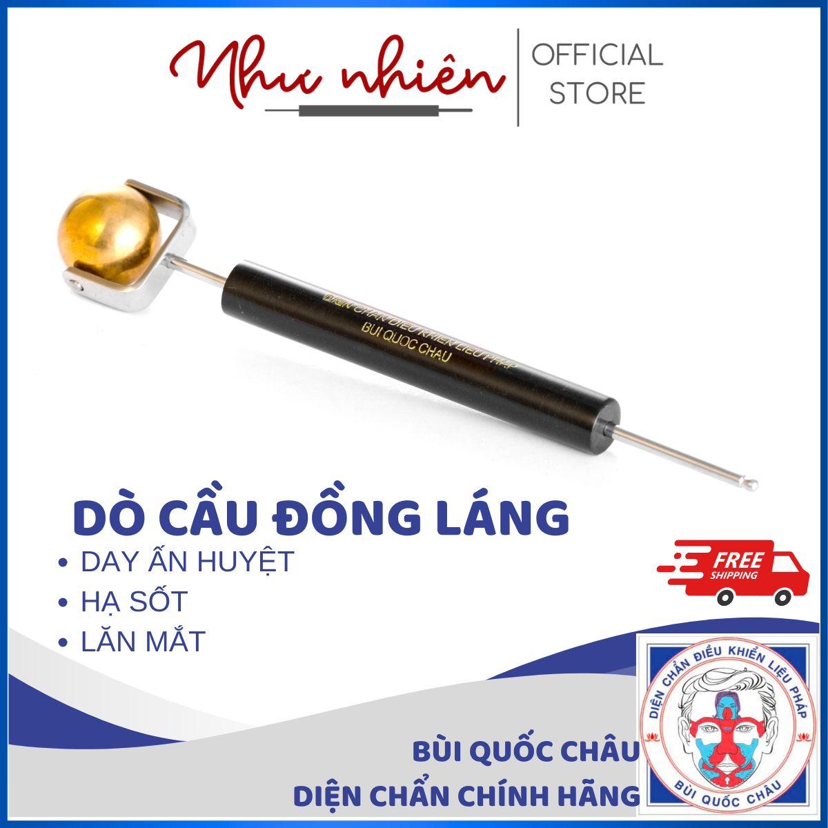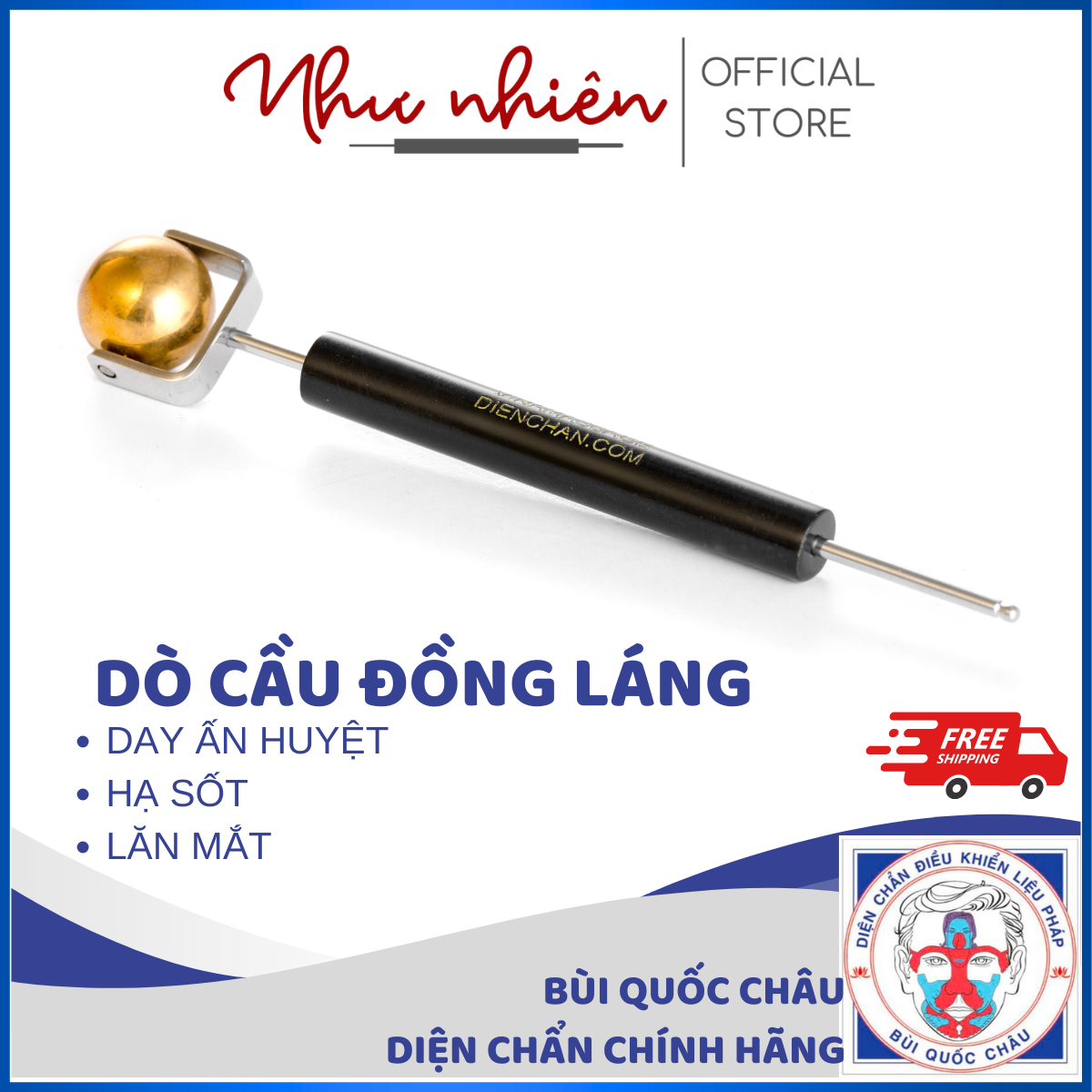 Dùng lăn và dò huyệt trên mặt, trán, mắt, đầu lăn có tính âm, chữa đau mắt
