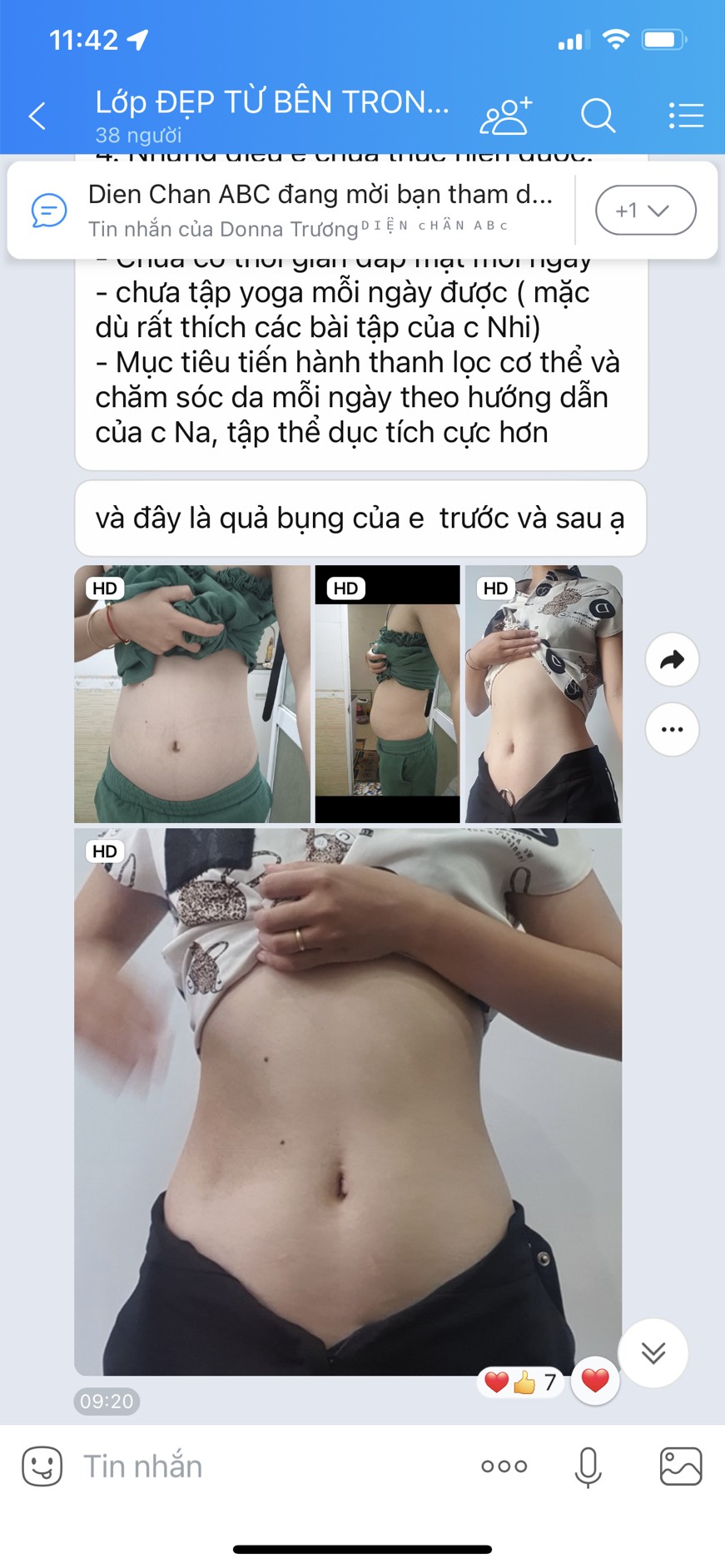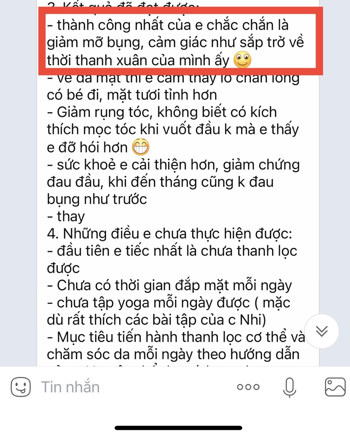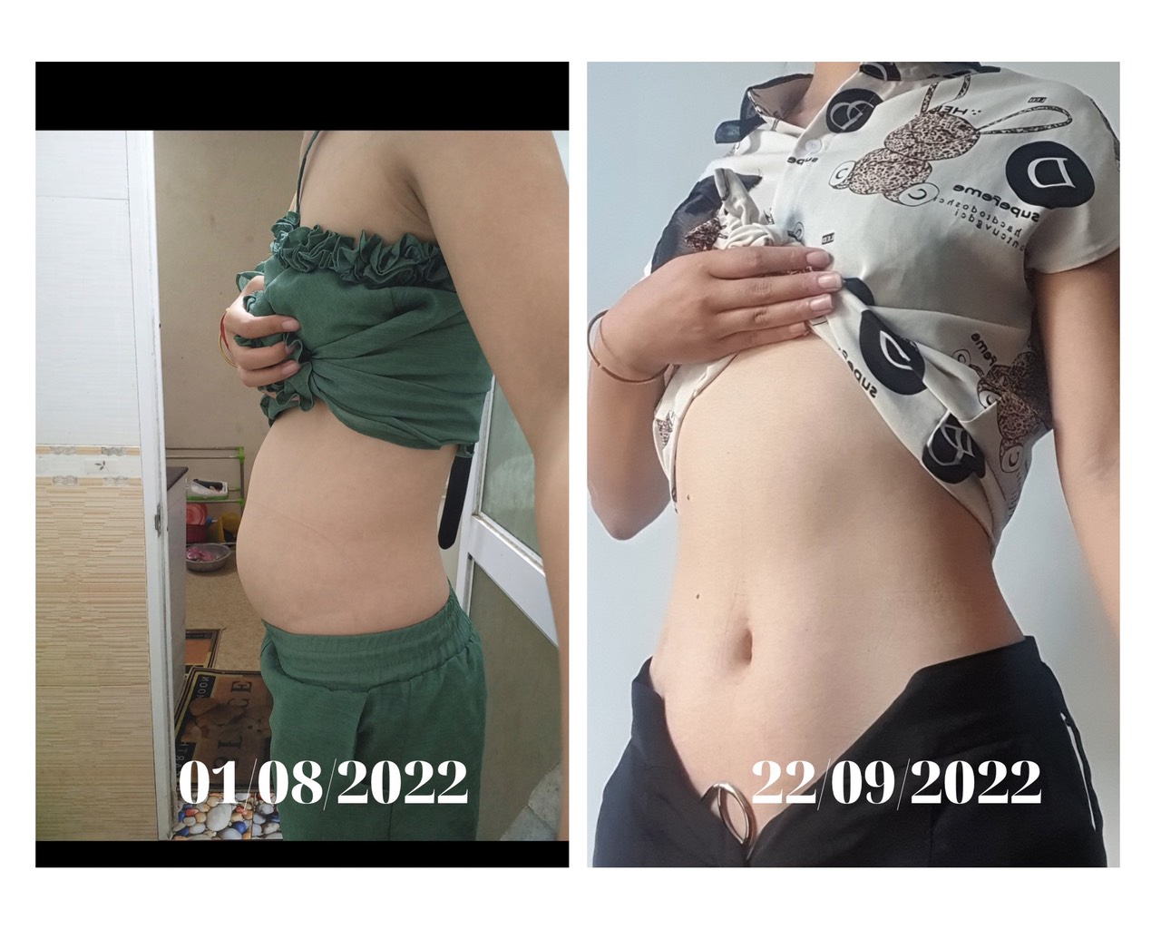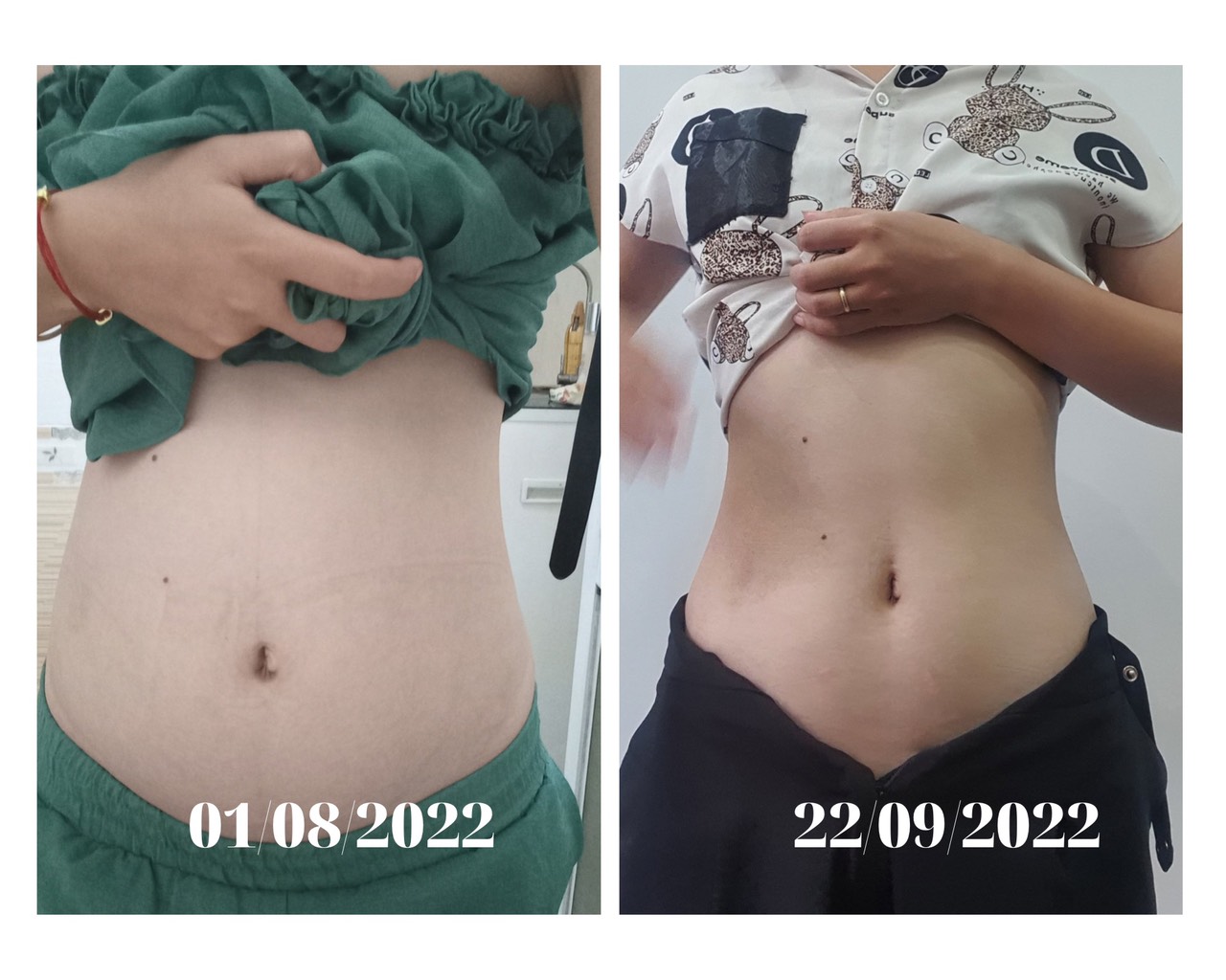 Mỡ bụng có lẽ là nỗi khổ chung của các chị em phụ nữ, đặc biệt là những mẹ bỉm sau sinh! Bạn Phương Hoa khi tham gia lớp Đẹp Từ Bên Trong K2 cũng có chung nỗi khổ đó. Bạn tham gia với mong muốn cải thiện làn da, cải thiện sức khỏe và đặc biệt là giảm bụng. Khi tham gia, bạn cũng không nghĩ bản thân có thể giảm mỡ bụng được một cách nhanh chóng. Vậy mà trong suốt 2 tháng học, khi kết khóa, điều bạn cảm thấy hài lòng và bất ngờ nhất lại là vòng eo của bạn, đến mức bạn phải thốt lên "thành công nhất của em chắc chắn là giảm mỡ bụng, cảm giác như sắp trở về thời thanh xuân của mình ấy". Chưa kể, những kết quả khác đạt được như lỗ chân lông thu nhỏ, giảm rụng tóc, giảm đau đầu, không còn bị đau bụng kinh.